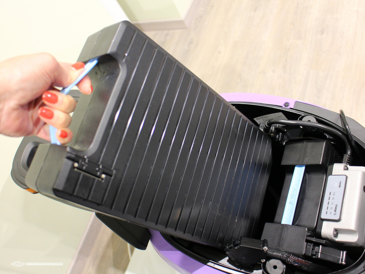 El scooter incluye dos baterías de Litio extraíbles de 1 kWh para una autonomía de 71 km. Las baterías pueden cargarse en 180 minutos.